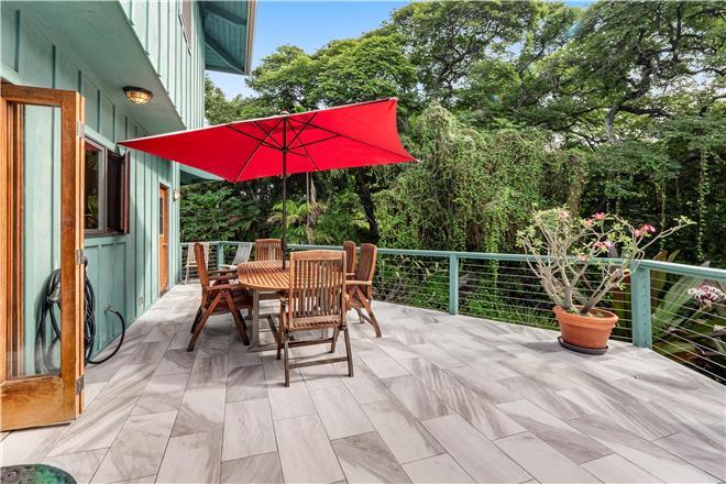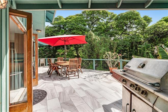 Sure to delight any chef, the full kitchen displays stainless steel appliances, ample meal prep space, and a sizable breakfast bar. Your home-cooked meals are best enjoyed on the lanai, alfresco.