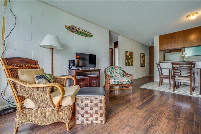 Maunaloa Shores 612 is a retreat that feels like home. This rental has recently been redone in tropical decor, accented by original artwork and there are comfortable armchairs both inside and out on the private lanai. Its central location makes walks to the beach to swim and relax just minutes away, or you can roam the farmers market, shops, and many restaurants conveniently located nearby. There is also a shared, freshwater pool onsite if youd rather stay close to home.