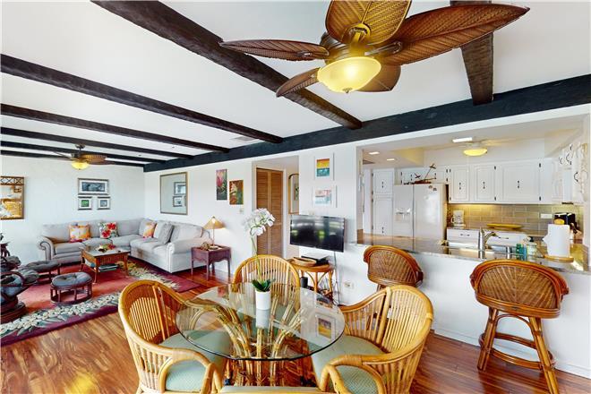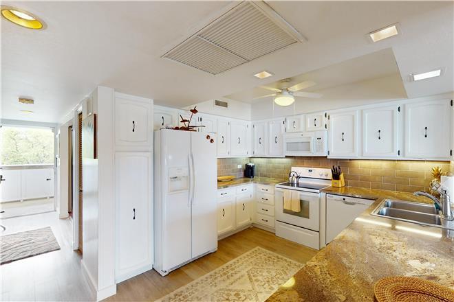 Perched on the top floor, this stunning 2-bedroom, 2-bathroom condo in Kailua-Kona offers sweeping ocean and coastline views that will take your breath away. This casually elegant home is the epitome of comfort and style with central AC, an in-home washer/dryer, and Netflix streaming for your enjoyment. The sleeping accommodations include a king bed in the master bedroom, two twin beds in the guest room, and an inflatable queen mattress for additional guests. The condo boasts a fully equipped kitchen and all the amenities needed to whip up delicious meals during your stay. Enjoy your culinary creations at the dining table or step out onto the private lanai to dine al fresco while soaking in breathtaking ocean views as well as the chance to see dolphins and whales frolicking, depending on the season. Located in Kailua-Kona, this home is close to cultural attractions like Hulihee Palace and Hulihee Palace State Monument. For outdoor enthusiasts, activities such as scuba diving, snorkeling, horseback riding, and cycling are just a stone's throw away. The property itself boasts an abundance of amenities including fresh and saltwater pools, a private beach, a popular Cabana where guests enjoy outdoor grilling and the opportunity to meet new friends, and an elevator for easy access. Rented in tandem with each other, Unit 317 can even be combined with Unit 316 if you're traveling with a larger group or extended family, providing flexibility and comfort during your stay. This spectacular coastal home offers everything you need for a relaxing and memorable Kailua-Kona vacation. THINGS TO KNOW This property is managed by Vacasa Vacation Rentals of Hawaii LLC.