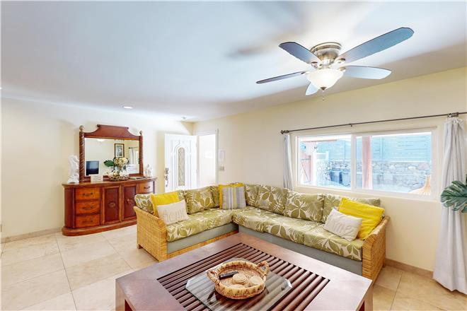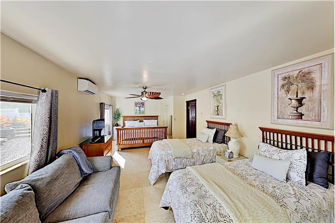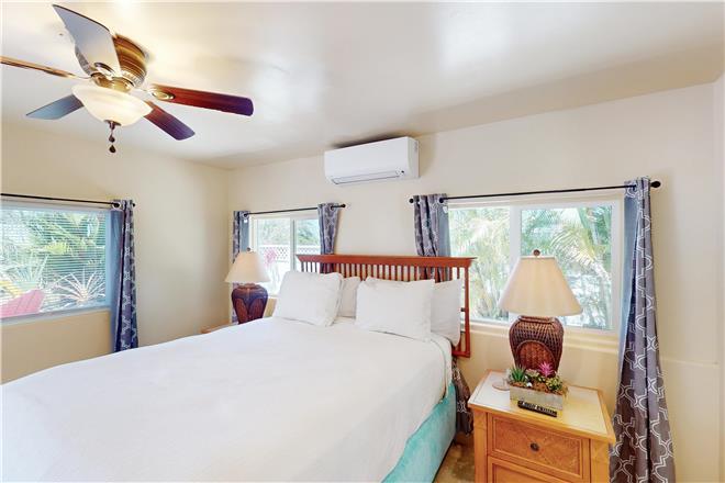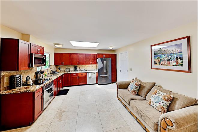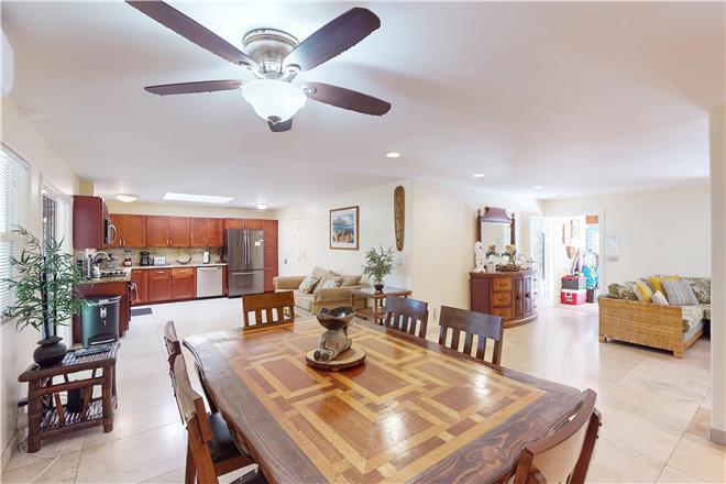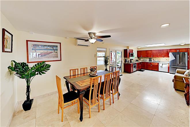 This home is in a quiet neighborhood with an enviable central location, a twominute drive from all the action in downtown Kona including the mustsee weekly farmers market. The beaches, Kailua Bay attractions, dining, and shopping options are all less than 10 minutes from the home. Two wellappointed bedrooms are located in the main home, while three boutiquestyle suites have private exterior entrances. Each room is equipped with a TV. The primary suite includes a queen bed, full sleeper sofa, and direct lanai access, plus an ensuite bath with a walkin shower. The second bedroom has a queen bed. The second bath has a walkin shower. The third bedroom boasts a king bed, two twin beds, a sofa, and a separate entrance, with an ensuite bathroom with a walkin shower and a double vanity. The fourth bedroom has a queen bed and a separate entrance. The ensuite bathroom has a walkin shower. The fifth bedroom has a queen bed and a separate entrance. The ensuite bath has a walkin shower. Additional amenities include AC, free highspeed WiFi, a washerdryer, and beach gear that includes chairs, toys, and boogie boards.