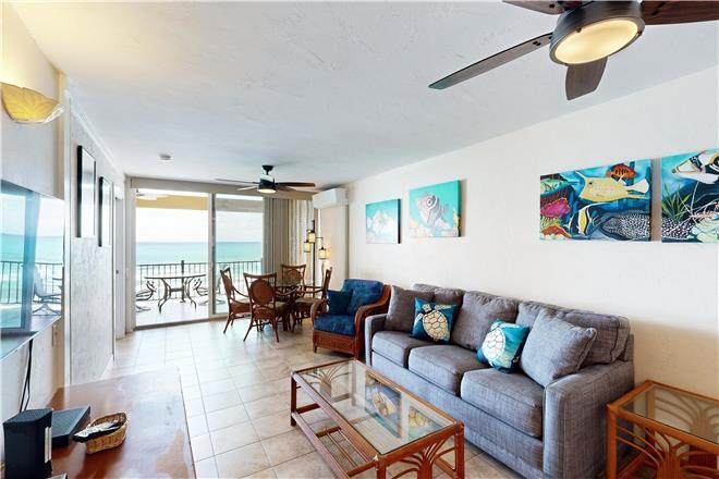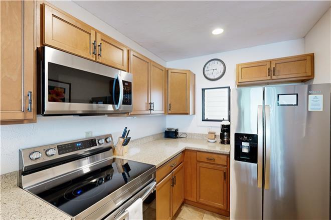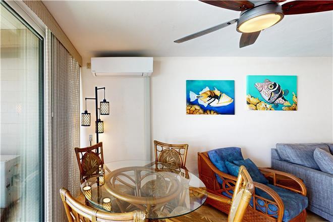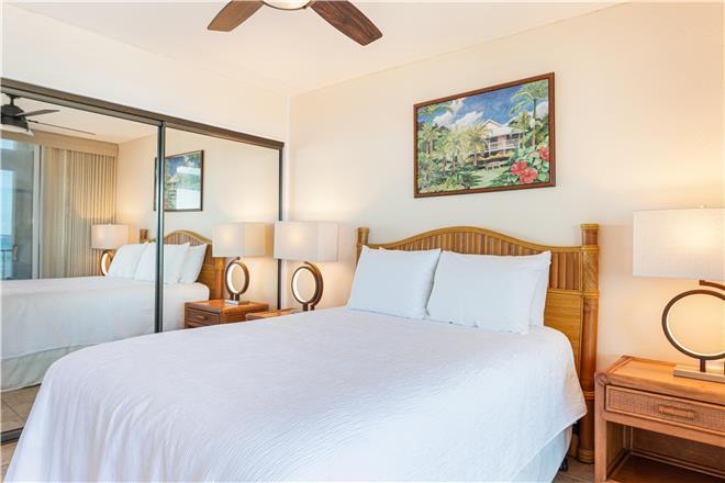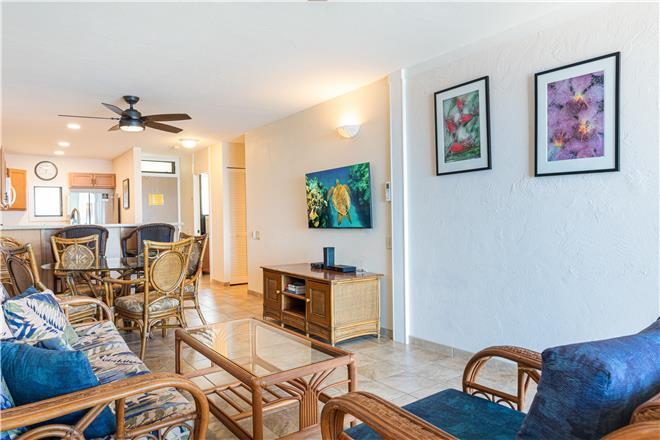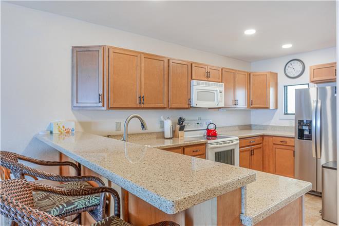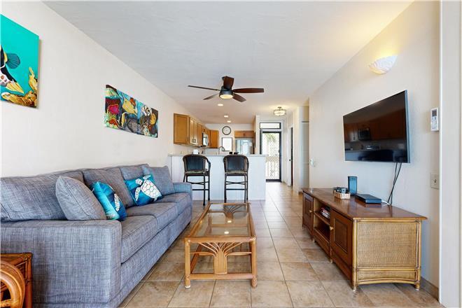 The amazing views of the Pacific Ocean are just the beginning when you stay in this lovely condo. The full kitchen is equipped for vacation cooking projects, which can be easily enjoyed on the private lanai overlooking the ocean. Guests can feel comfortable any time of day with ceiling fans and air conditioning. Guests can enjoy access to the resorts shared pool and hot tub during their stay.