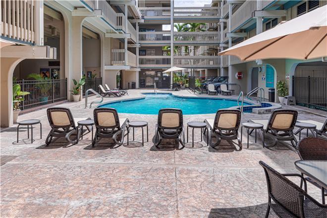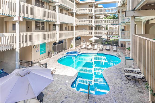 The pool and hot tub are in the main complex of Kona Bali Kai.