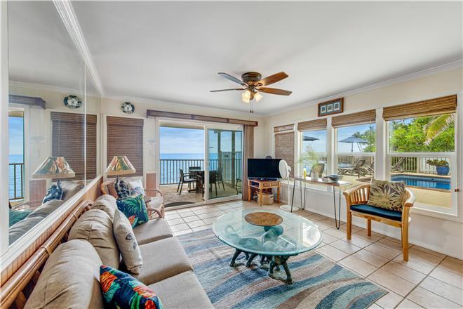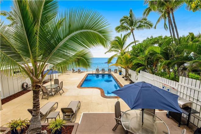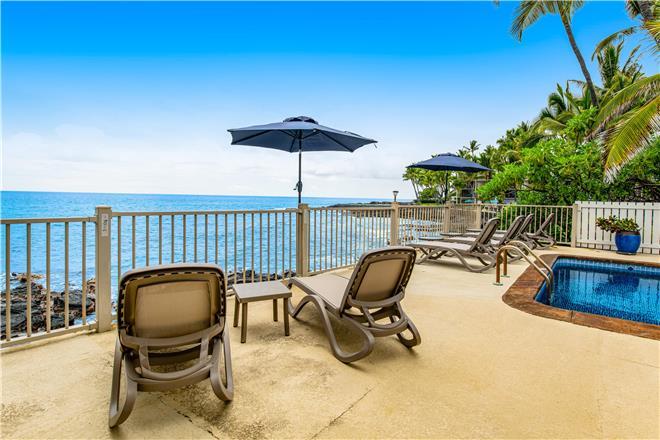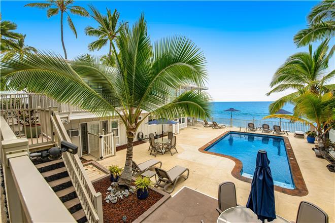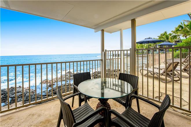 A spectacular oceanfront setting awaits at this groundlevel condo in KailuaKona, where it feels as though the waves are lapping up to your lanai. Take in incredible, 180degree views of the ocean, windsurfers and boats below, and an unforgettable sunset each evening.