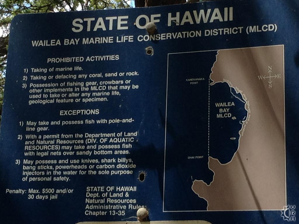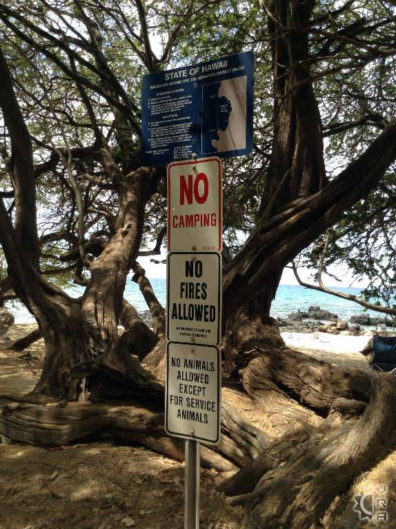 What Waialea lacks in size and facilities to neighboring Hapuna it makes up in intimacy, character and shade. Designated as a State of Hawaii Marine Conservation District, this small beach has been legislated into preservation for generations to come. Beach goers need to know that this means along with taking fish, taking coral, rocks or sand is illegal. In addition, fishing is allowed for consumption purposes and only with a permit. Posted signs with the name of the bay misspelled (!) outline the regulations for public reference.