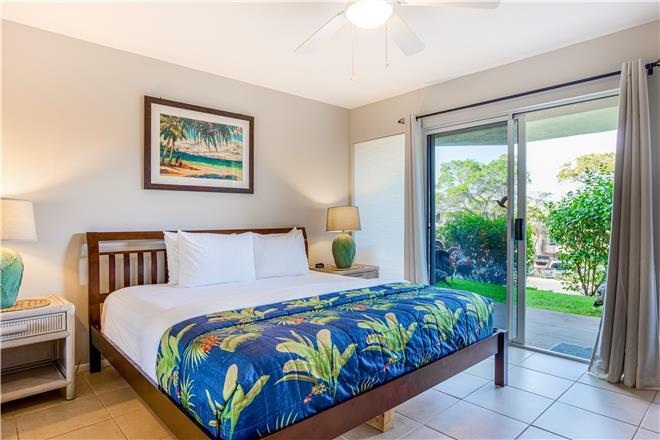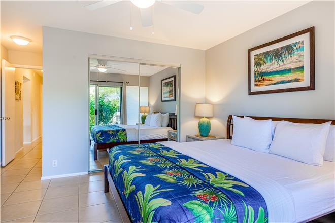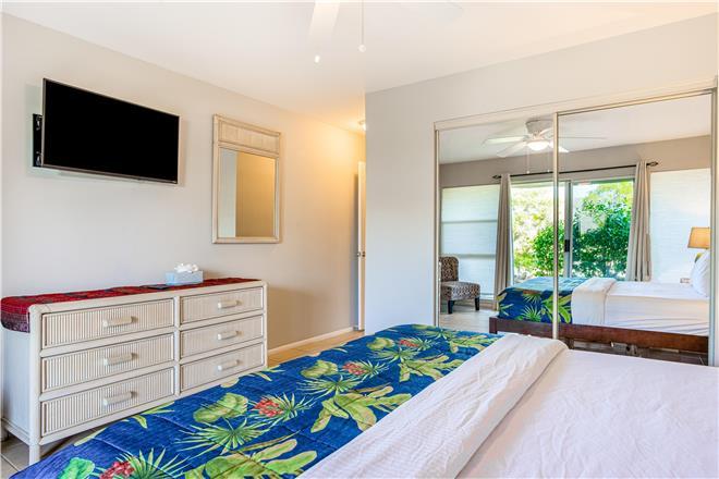 Bedrooms have been lovingly decorated with cheerful colors and Hawaiian artwork. Appreciate effortless access to a private lanai from the primary bedroom, and an en suite bathroom with a large soaking tub.