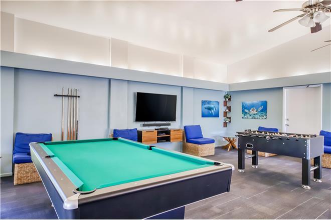 Additional shared perks your stay boasts are the community game room, equipped with a pool table and a foosball table, tennis courts, an outdoor PingPong table, a grilling area, and of course, the pool and hot tub. Wash your swimsuits in the condos private washerdryer after a day spent enjoying the shimmering waters.