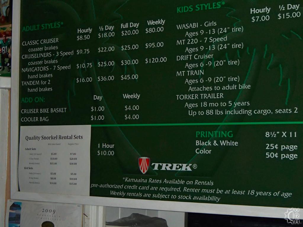 - $8.50 an hour to $20 for the day for single speed cruisers