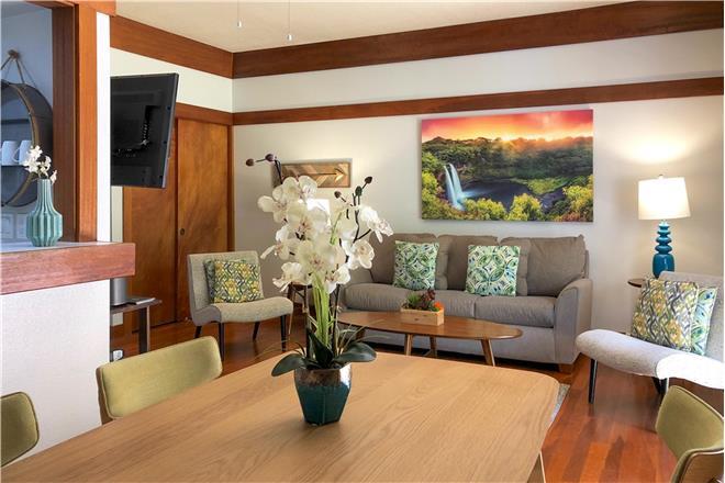 When its time for a little relaxation, head into the cozy living room where new furniture beckons you to relax. Youve spent the day riding the waves outside, now its time to do another type of surfing flipping through the cable channels on the flatscreen TV or cuddling up for a movie night in bed. Or, stream your shows to your device using the free WiFi.