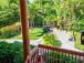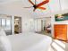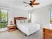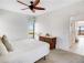 Turtlethemed second bedroom features a queen bed a tropical garden view, and is located on the main living level.