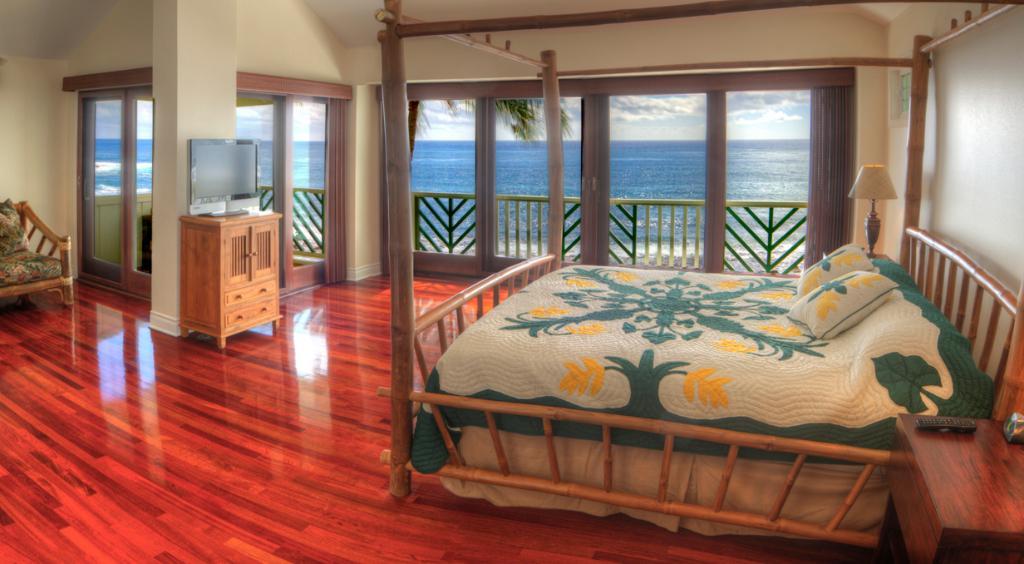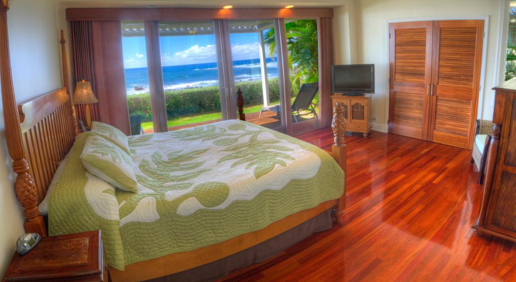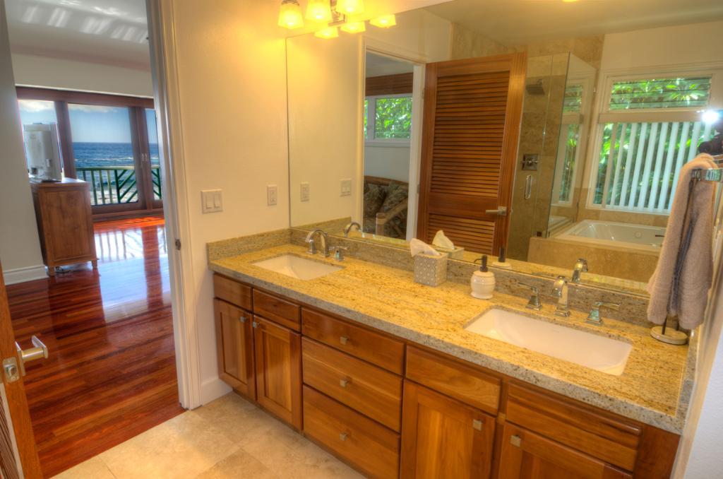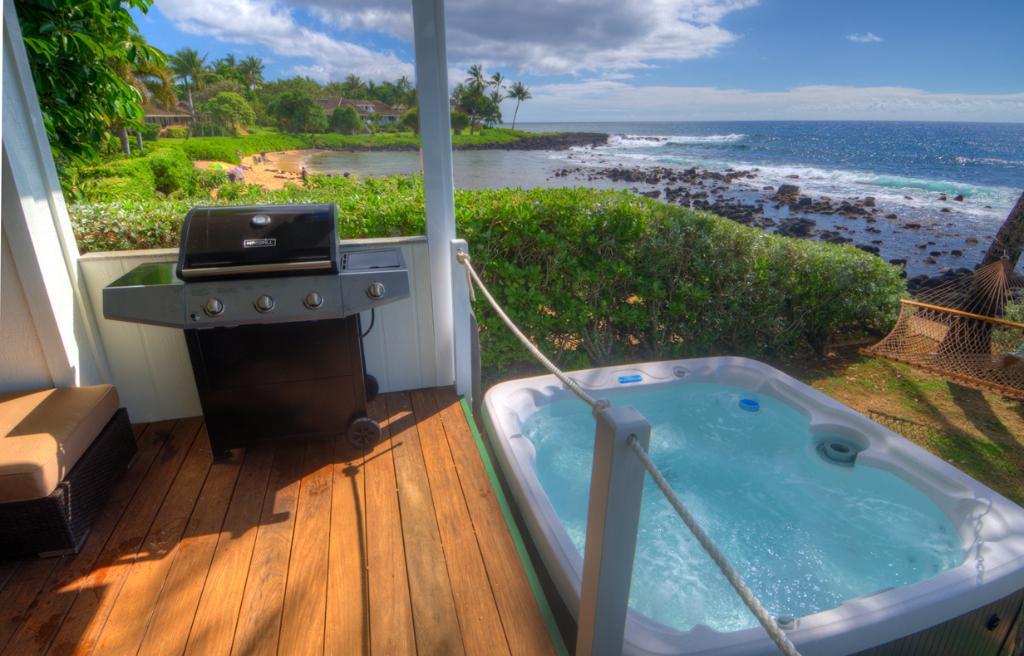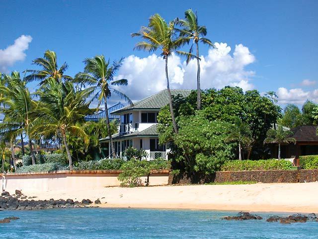 Hale Nalu is a roomy 3 bedroom, 3 bath home fronting the delightful Baby Beach and situated in a charming Poipu residential neighborhood. Spacious and appealing at 2,450 square feet, Hale Nalu features a beachfront master suite with Jacuzzi tub upstairs and a 2nd master bedroom downstairs, both with exquisite sunsets from the beachfront decks. Stunning hardwood floors, hot tub, outside beach shower and high speed wireless internet access are just a few of the amenities. Hale Nalu is a 5 minute walk from the dynamic Kukuiula Village Shopping Center. With renovations completed in 2013, location and quality combine to make Hale Nalu the akamai (smart) choice, compared to other properties, for comfortable and casual living!