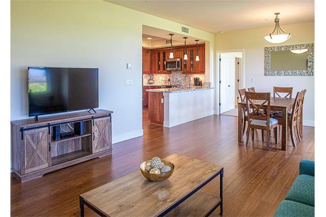 You'll have your own private, ground-floor balcony with a table and six chairs, featuring views of the golf course as well as ocean and mountain views.