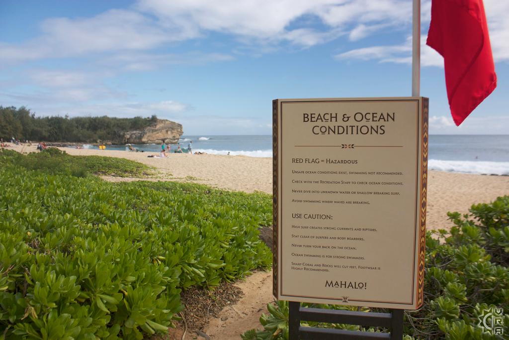 A red flag is posted at the resort visible on right side of beach when hazardous conditions have been observed in the Bay. If in doubt, don't go out!
