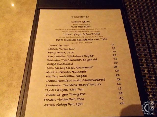Be prepared for free valet parking as you drive to the end of the long driveway into the resort. An immediate air of being regarded as a "v.i.p." is instilled from start to finish of your dining experiences here. Once seated the courteous staff has your back, feel free to ask questions regarding the unfamiliar on the menu. Beware of the delicious cocktails menu! They take mixology seriously making it a destination for just the drinks alone. The martinis for instance are offered in flavor combinations you have never thought of before. If you can't decide, try the "Martini Flight" which gives you 3 mini-martinis from any flavors seen on the Martinis menu.