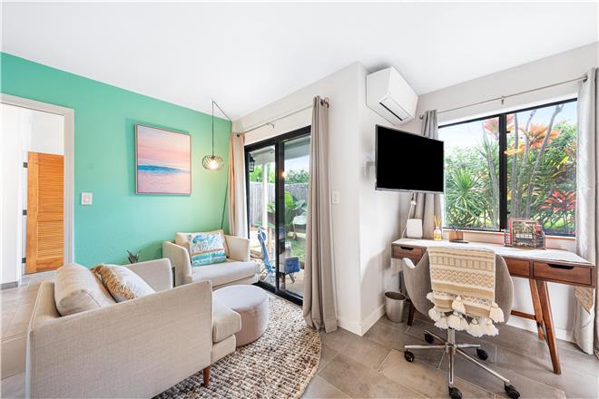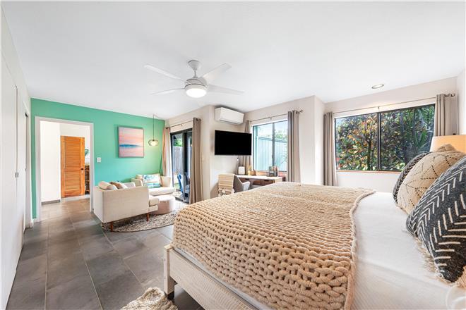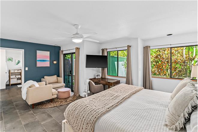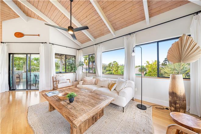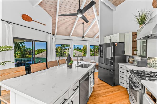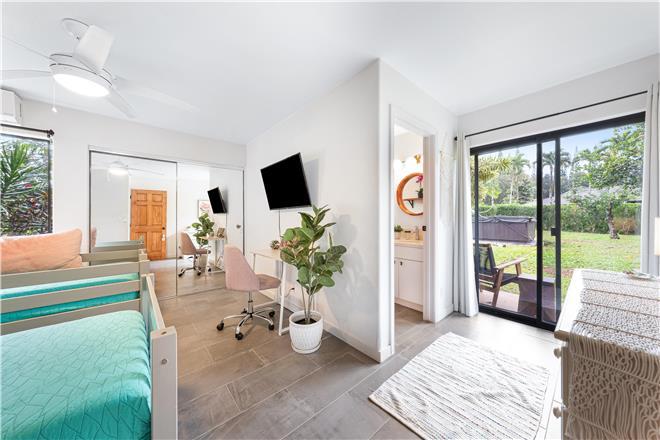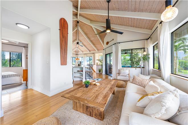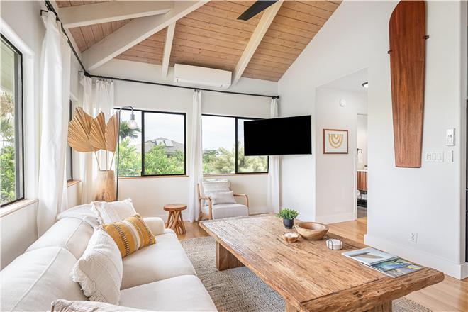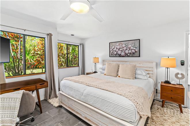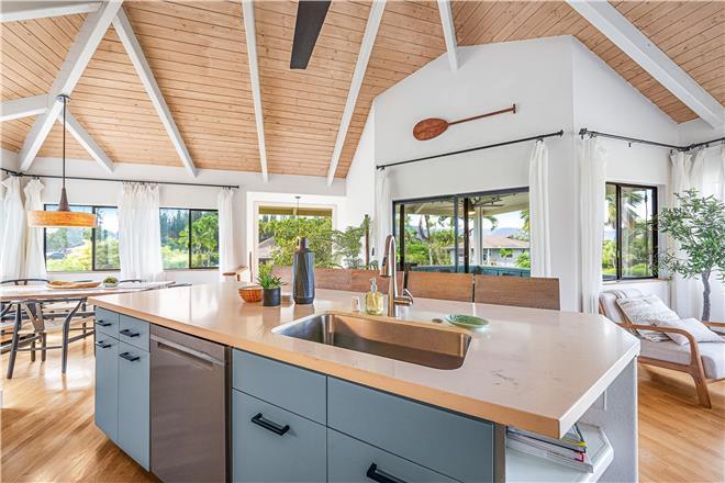 Take in mesmerizing waterfall and sunset views from both the living room and lanai at this tropical oasis. Tucked away on a peaceful cul-de-sac and located close to beautiful ocean beaches, this designer home is certain to be the highlight of your next vacation in paradise!