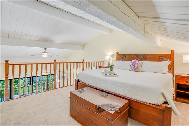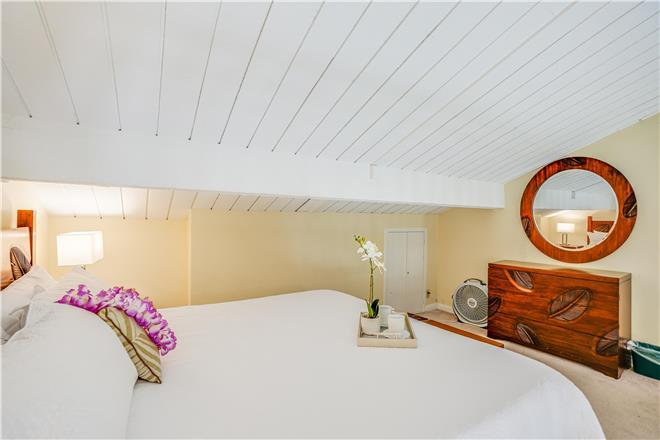 Unit 2302 loft bedroom with Queen Bed, garden view lanai, queen sofa bed and full bath.