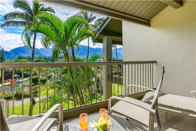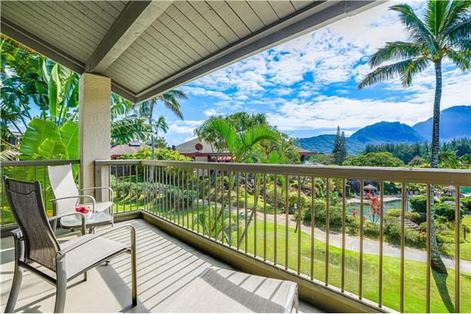 Hanalei Bay Resort 23012 is an airconditioned combination vacation rental. It features marvelous garden views of the property, the saltwater pool, Mt. Namolokamas rugged mountain range, and waterfalls during the seasonal rains.