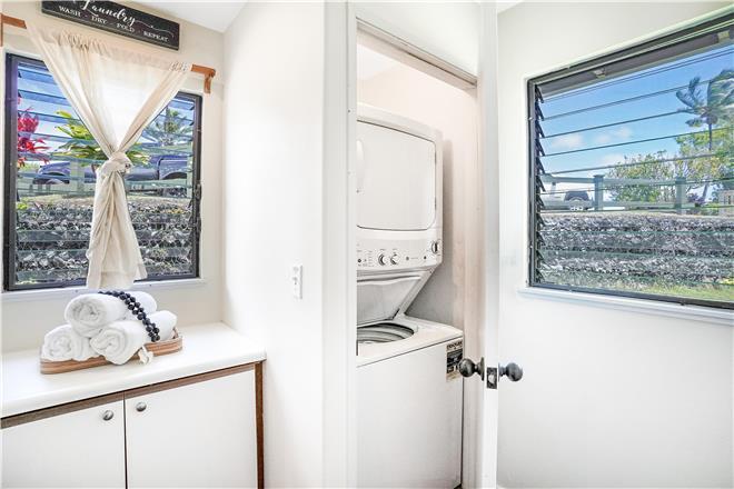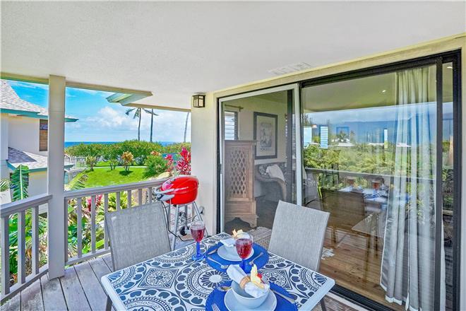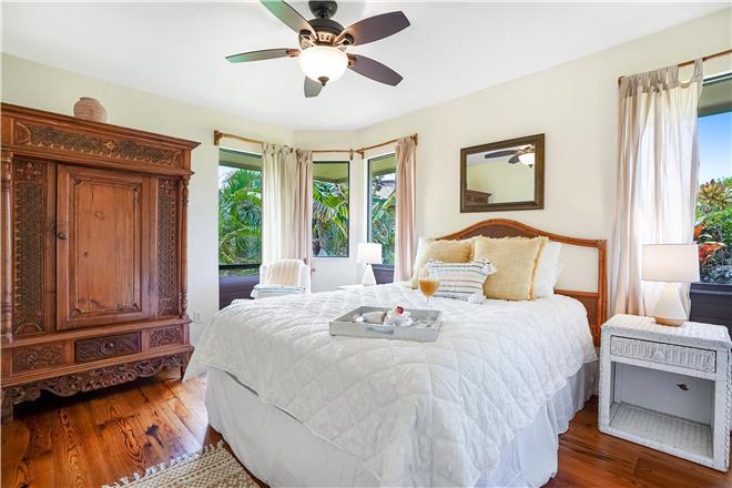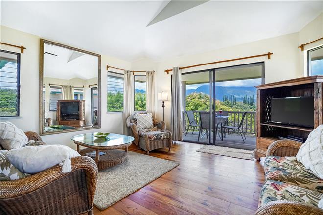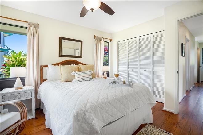 This is a two story, twobedroom, twoandahalf bathroom villa with a fully equipped kitchen, a comfortable living room with a flatscreen TV, and free WiFi. It has ceiling fans throughout, as well as a dining area and two lanais facing the lush tropical beauty of Kauai. Amazing sunset views of the ocean from the dining room cannot be beaten! The master suite has a lovely queensize bed, flatscreen TV, walkin closet, full bath, and a private lanai. The guest bedroom features a queensize bed and ceiling fan.