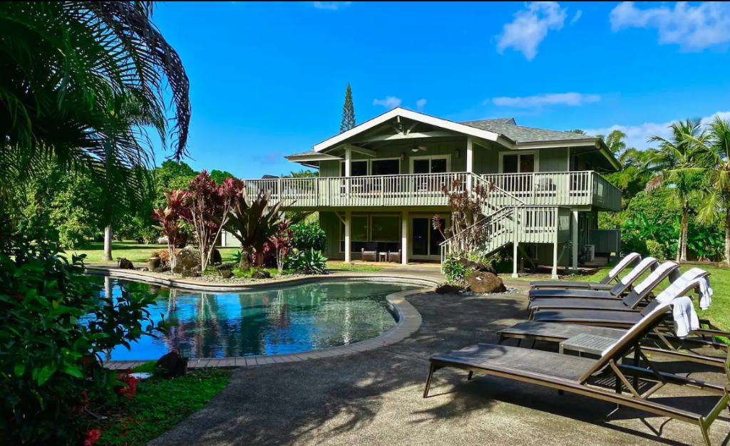 OMG - Huge Pool, Hot Springs Hot Tub, Full Private Gym, Peloton, Air Conditioning in Every Room, Pool Table, Ping Pong, 5 Acres, Fruit Trees, 5+ Bedrooms, Sleeps 10 - 14, Miles Of Trails Directly Behind Home...Minutes From Kalihiwai Bay, Secret Beach, Anini beach and Hanalei Bay.