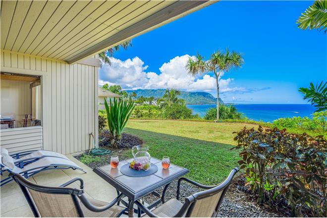 This onebedroom, groundfloor condo at Pali Ke Kua offers this and much more. First of all, the bedroom is airconditioned for your comfort. The views from this retreat are unbelievable! Whether you want to watch the whales breaching during the winter months or watch the Hawaiian Nene geese feeding yearround on the lawn, you wont miss any of it from this getaway. Mount Makana also known as Bali Hai can be seen across Hanalei Bay as well.