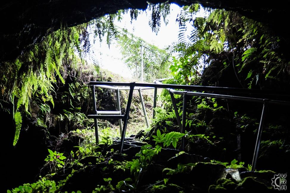 The lava tube features rare lava stalagmites, fissures, beautiful skylites, stalactites, and chockstone, and has handrails throughout, as well as educational signs with descriptions of the cave's history and various features. Guests are given powerful flashlights to light their way, as the interior of the cave is inky dark. Because of this, it is very difficult to take photos inside the cave. However, cameras are allowed and there are a couple points along the path where light shines through a skylight, with the sun rays beaming life to the green plants and ferns surrounding the opening. These tender plants are the only signs of life in the cave, and make for a beautiful photo.