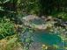 As the paved path ends, walk toward the stream and proceed along the plantings of torch gingers toward the Queen Emmas Spider Lily. Just below this planting is a gorgeous swimming hole. If the stream is running clear you can see the bottom of this cool shallow pool, and wading and soaking are highly recommended. Note that if the stream water is cloudy or running with strong current the stream may be under flood conditions and should be avoided. Be aware of your foot steps in and around the stream as wet rocks can be slippery. No jumping, its shallow water.