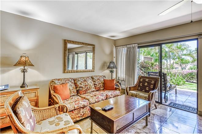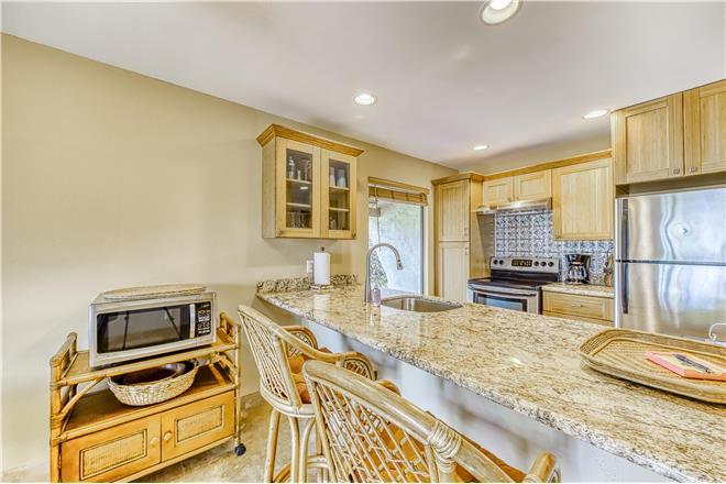 Relax in a friendly condo with cool tile and wood floors throughout. Youre on vacation now! Ease into the living area or on the private patio surrounded by lush plants. The full kitchen includes a dishwasher, fullsize amenities, and a breakfast bar long enough to enjoy a casual meal together. Guests can enjoy not only an en suite bathroom with a standalone shower, but also a private patio branching off from the bedroom. Relax after long days of exploring with a selection from the DVD library, or play some favorite tunes with help from the sound dock. Guests can also enjoy access to the shared outdoor pool, hot tub, and tennis court during their stay.
