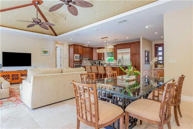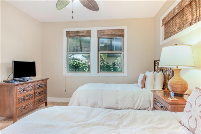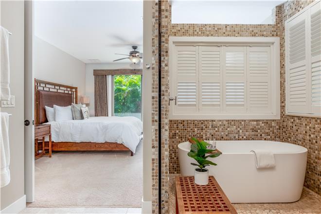 At the home itself, start the day with coffee on the shady, private lanai. Grab a book and take your time youre on vacation. When you get hungry, step through the double French doors to make some breakfast. Throughout the open space, youll find high ceilings, elegant, islandinspired decor, and abundant natural light. The sleek, wellequipped kitchen features stainless steel appliances and plenty of counter space, making meal prep a breeze, and everyone can dine together at the glasstop table for six. Even better, step back outside and dine alfresco on the lanai. After breakfast, grab the beach gear and boogie boards and head straight for the sand. Spend the evening back at home, enjoying the gentle tropical breeze with a sundowner, then watch a little TV or visit the complex hot tub to soak under the stars. Three wellequipped bedrooms will lull you to sleep, with the primary suite featuring a spalike bathroom and soaking tub. Your vacation in paradise awaits all thats left to do is book.