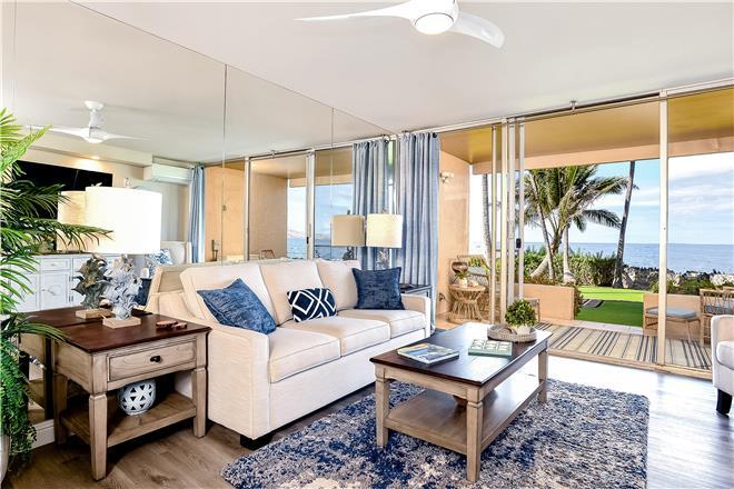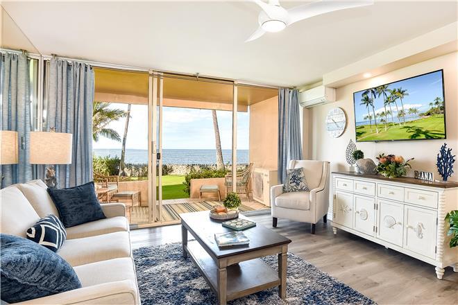 Youll love coming home to this incredible groundfloor condo. Then again, why would you leave Every morning, you can enjoy waking up with the ocean waves and a cup of coffee in hand on your lanai. Or feel free to stroll along the beaches or manicured lawn watching one of the famous Maui sunsets. When you come back inside, youll find everything from the floors to kitchen to bedroom beautifully decorated and updated. Pack a little lighter with the inhouse washer and dryer, but dont forget extra swimwear for the shared pool with the ocean view.