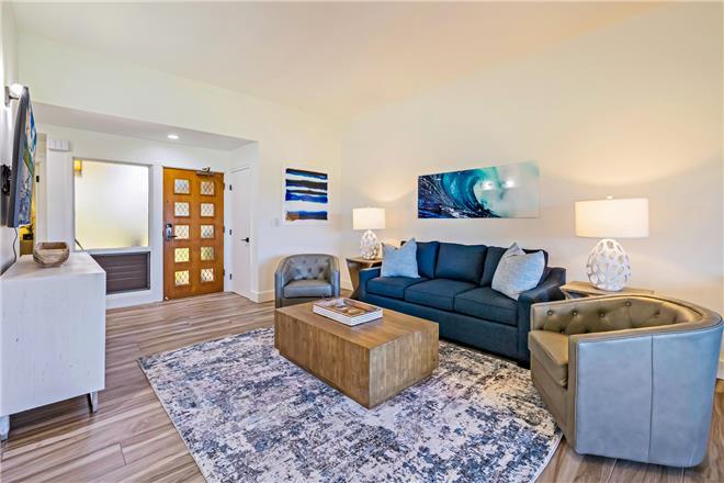 * Living Room Queen sleeper sofa lets the residence host up to four; a second full bath with herringbone detailing ensures equal comfort and privacy.
