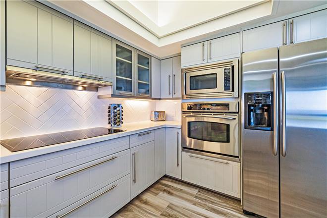 Quartz countertops, stainless appliances, and full cookware invite everything from sunrise smoothies to fresh-catch dinners enjoyed at the four-seat indoor table, or alfresco on the lanai caf set.