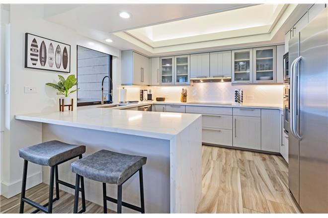 * Resort Perks Two gated pools with BBQ cabanas, shaded parking, and walkable access to Oneloa, Fleming, and Kapalua Bays.