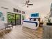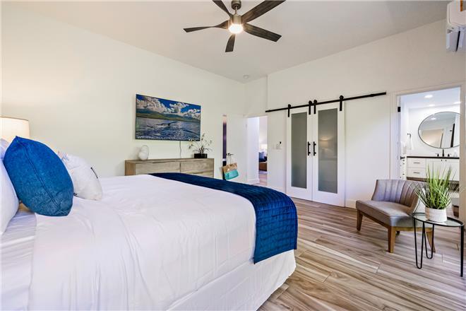 * Primary Suite Plush king bed, golf-course & ocean glimpses, A/C, ample closets, and spa-style ensuite with walk-in shower and dual quartz vanities.