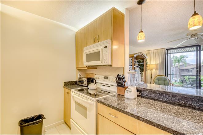 Surfs up at this charming tropical treat located just steps from the ocean! This condo is ideal for a peaceful getaway for two or a small family beach vacation. Inside, find tiled floors throughout, comfortable furnishings, and all the amenities you might need for the perfect time on Maui. Prepare meals in your wellequipped, full kitchen, dine together indoors at the table for four or al fresco on your furnished, covered patio. This home also includes a desk and chair and highspeed internet access for remote work and schooling. And when you need to cool off, take a short walk through the lush, landscaped grounds and find yourself at the refreshing outdoor pool.