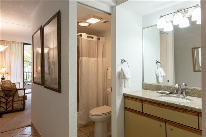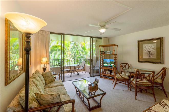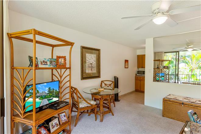 Start the day with coffee on your private, third-floor lanai, shaded by towering palms - you'll fall in love with the garden views of the waterfall koi pond. There is also a large ocean-facing lawn area with comfy lounge chairs, the perfect place for whale watching and stunning year-round sunsets. When you get hungry, the full kitchen offers all the appliances and gadgets you need for breakfast prep, and you can dine together at the table for four or outside on the lanai. After you eat, slip into your swimsuit and head to the complex pool or to the beach for a day in the sun. The ocean reef is teeming with sea life, and the tide pools are a favored destination for green sea turtles. Evening entertainment options at home include free cable, high-speed WiFi, and a DVD player. Have one last soak in the complex hot tub, and end the night as you began - back out on the lanai, but this time toasting your good luck at finding the perfect Maui getaway.