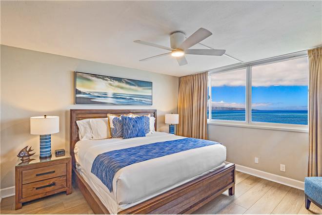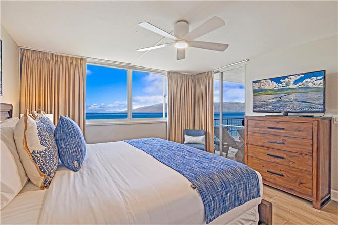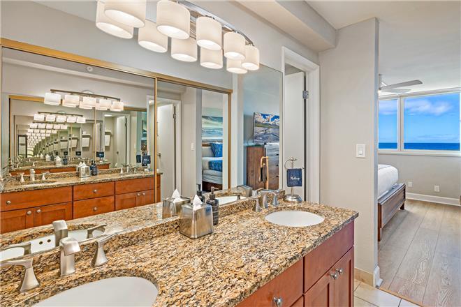 *Primary Suite (oceanfront) King Sealy Posturepedic bed, lanai access, smart TV, ensuite with dual vanities & walk-in shower.