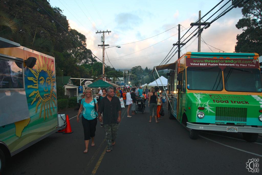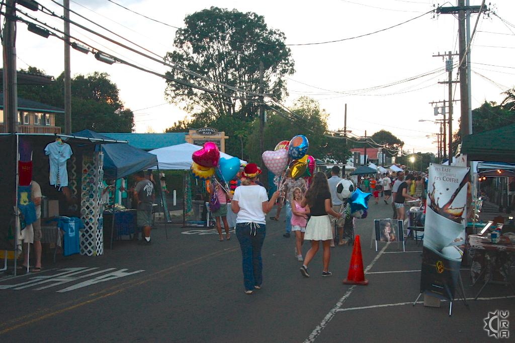 The festivities stretch from the area of the public library on Makawao Avenue around the corner down the Baldwin Avenue to the intersection of Brewer Road with something to see around every corner and most businesses staying open until 9 p.m. .