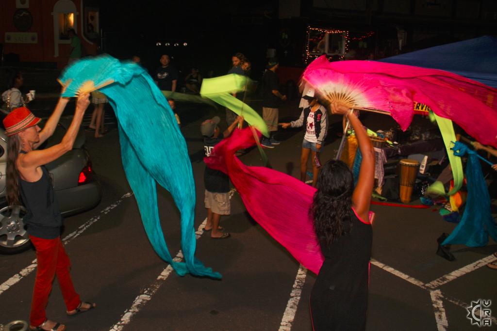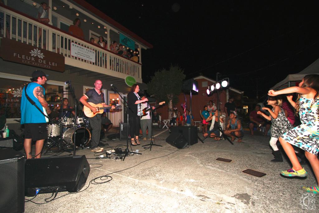 This "Friday Town Celebration" is part of a series of 4 regular Friday celebrations, each hosted by a different community and highlighting the local merchants and culture of the area. The town of Makawao hosts the 3rd Friday event and does so in style with multiple performance stages and 3 blocks of this usually sleepy community coming alive with music, dance, arts and culture. The event always has something different and surprising to offer. One month may feature a classic car show, and another may be holiday themed, or feature an extra special musical performance. The event starts at 6 p.m. and by 7 o'clock the crowd is lively and bustling with excitement of friends coming together in laughter.