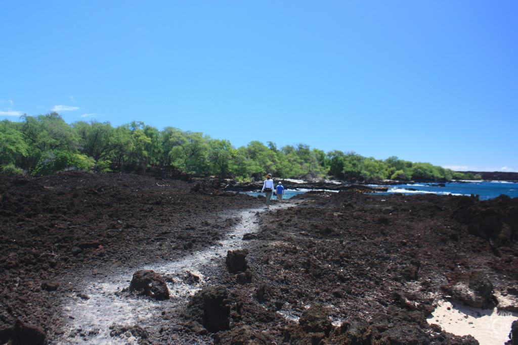 Five minutes into the hike you will pass a small "blow hole" in the lava field, and the trail winds narrowly past, through jagged lava for about 200 yards. The trail then joins a fisherman's four-wheel drive road and winds along for over a mile eventually linking to a light beckon on the southern most point of the peninsula.