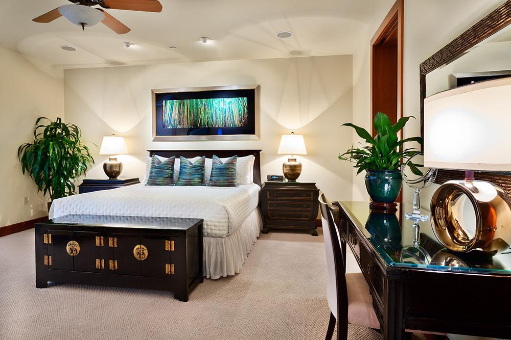 Our favorite features of G102 are the surrounding greenery, mural sized vintage art, Peter Lik photographs, the Espresso machine, multiple iPod docks, the cool travertine flooring, lofty ceilings, warm mahogany wood trim, colorful marble counters, soft all-cotton high thread count bed linens, and the fully equipped office nook.