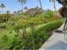 Large tiled lanai with garden setting, sunset views, and ocean peeks