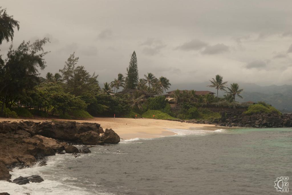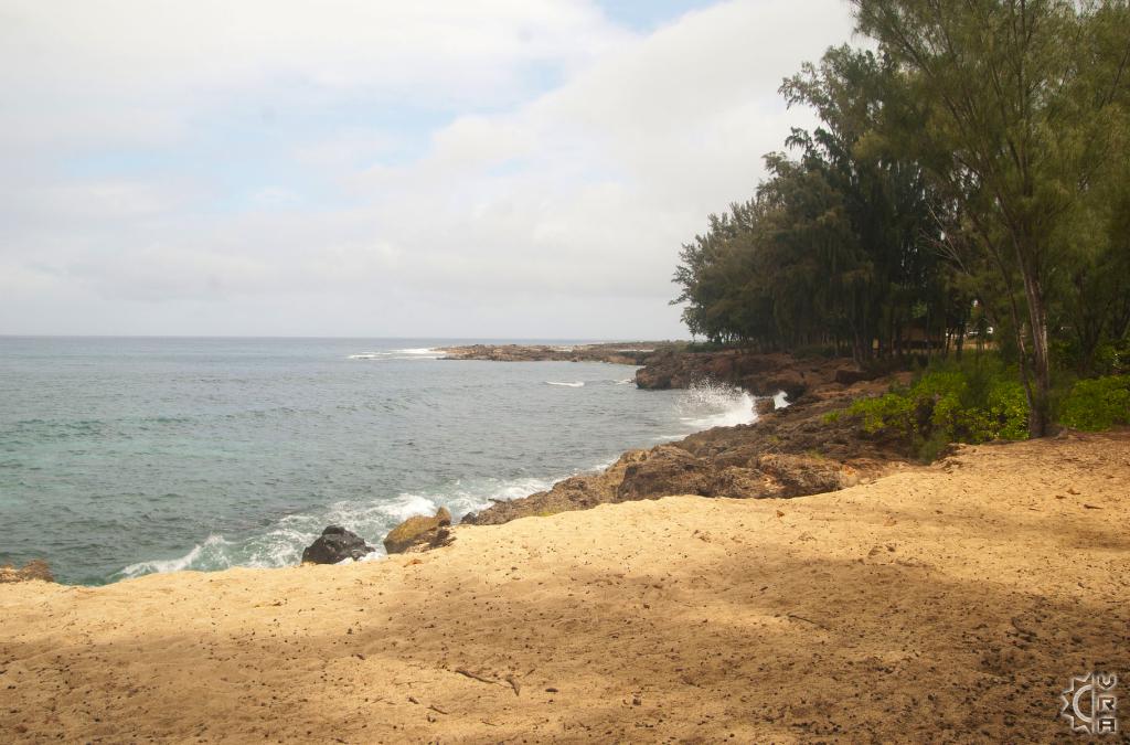 This beach is set back from the road, reached by taking a short walk from convenient parking area. The trees lining the edge of the beach provide some shade, and the low dunes covered by vegetation give it a much more remote and rustic feel. Though smaller then some of the expansive North Shore beaches, this one has very a charming character. Lava rock surrounds the small bay fronting the beach, and some outcroppings stretch out under the surface of the water , creating great habitat for fish and coral. Snorkeling is usually very good here in the summer, but is not recommended during northern and winter surf, as a rule.