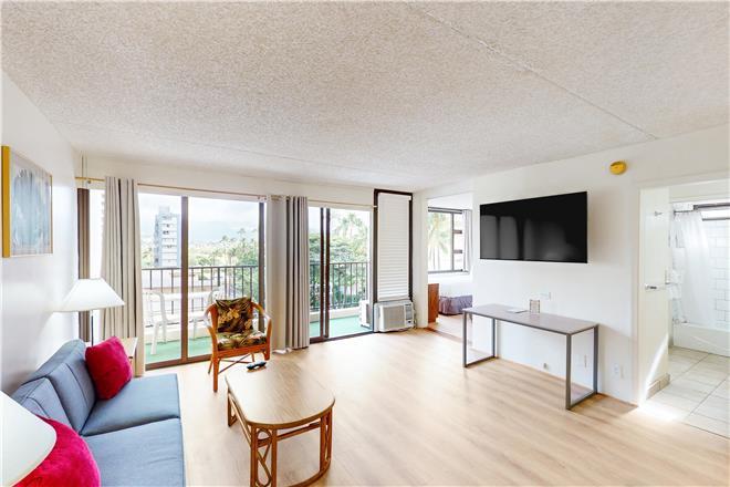 Whether you're starting your day with coffee or enjoying a sunset cocktail, the private balcony is perfect for basking in the cool breezes. The full kitchen is well-appointed for convenient home cooking. An updated smart TV sets the stage for casual downtime in the living room. Mounted air-conditioners and free WiFi add an extra dose of modern comfort and convenience.