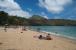The waters right off the beach are shallow, with flat reefs and rocks serving as a habitat for a myriad of fish. Be careful at low tide, as some coral heads might be only a foot or so beneath the ocean surface. The portion of the bay furthest to the left has sandy access point and schools of fish close to shore. Beware of the outer pair of buoys that mark a current exiting the area that can sweep snorkelers into the deeper portion of the bay. The first 75 yards of good snorkeling in the shallows closest to the shore are divided from the outer much deeper portion of the bay by a shallow reef shelf. Standing on the beach looking outward, look for the breaking waves. They are the boundary between the shallow and deeper waters.