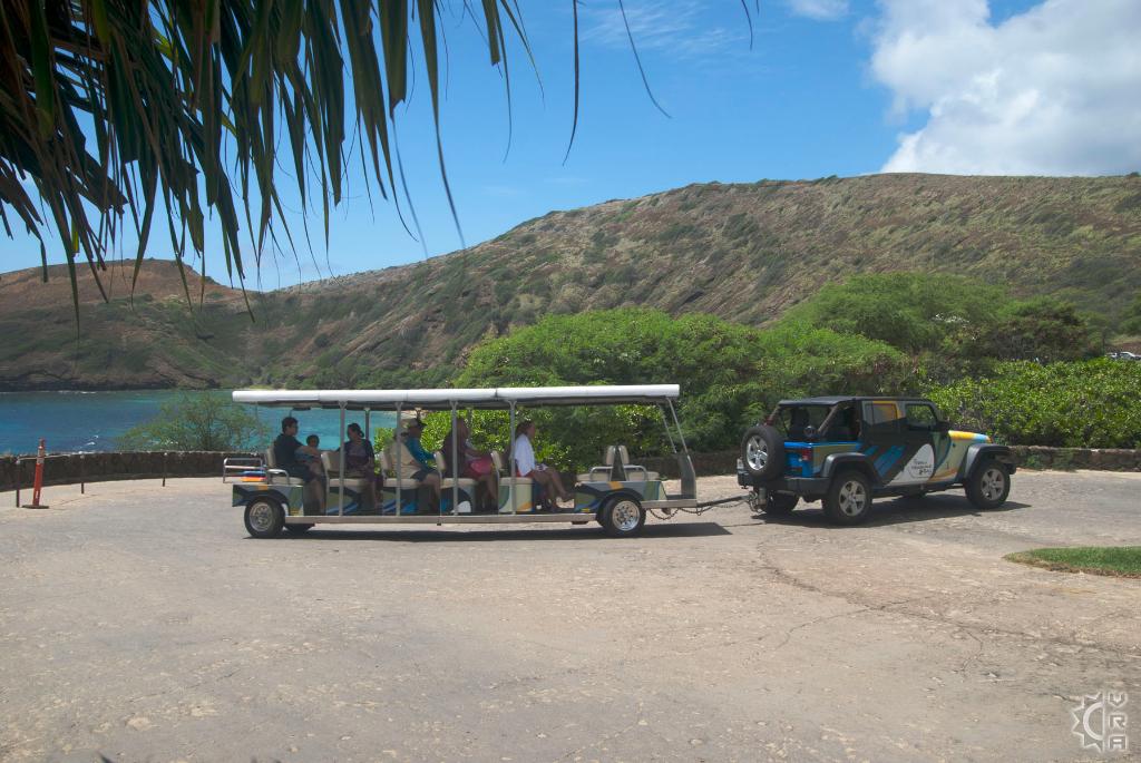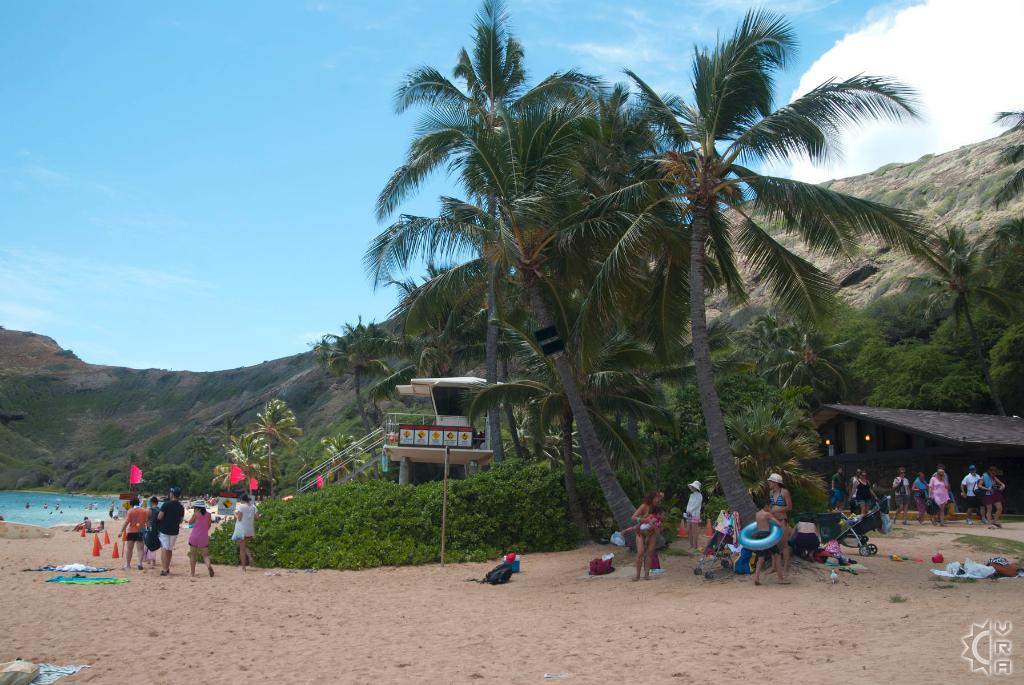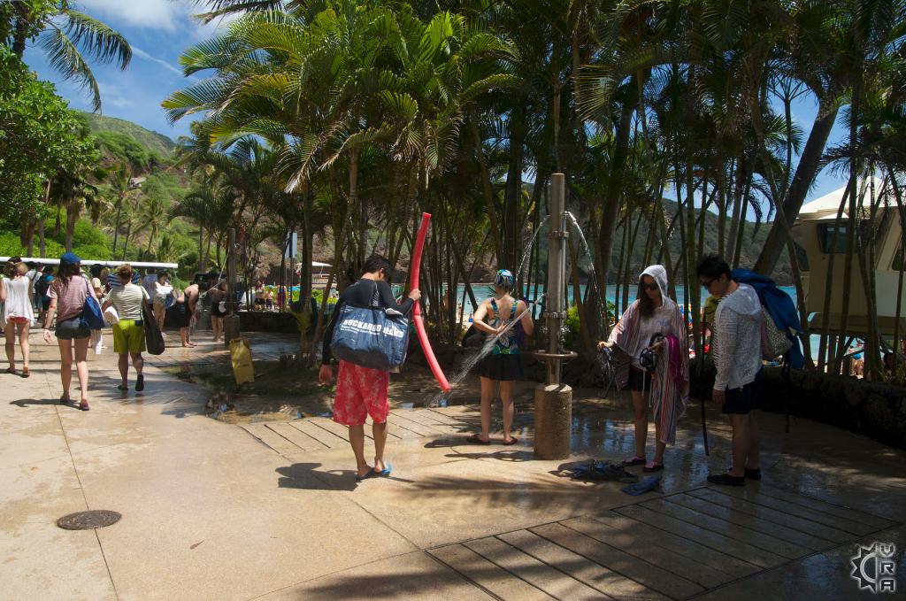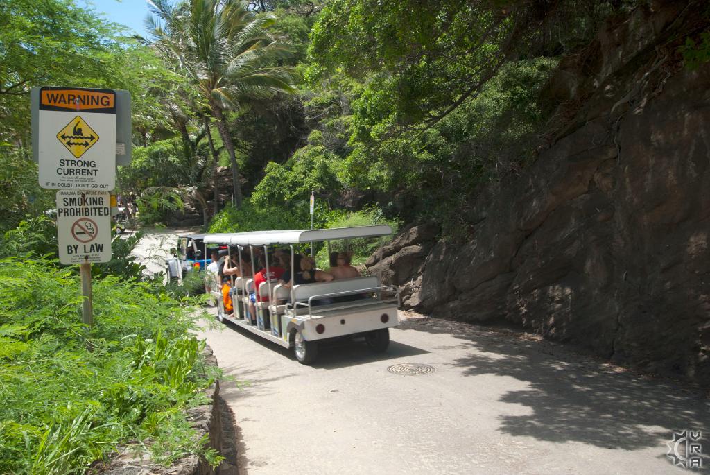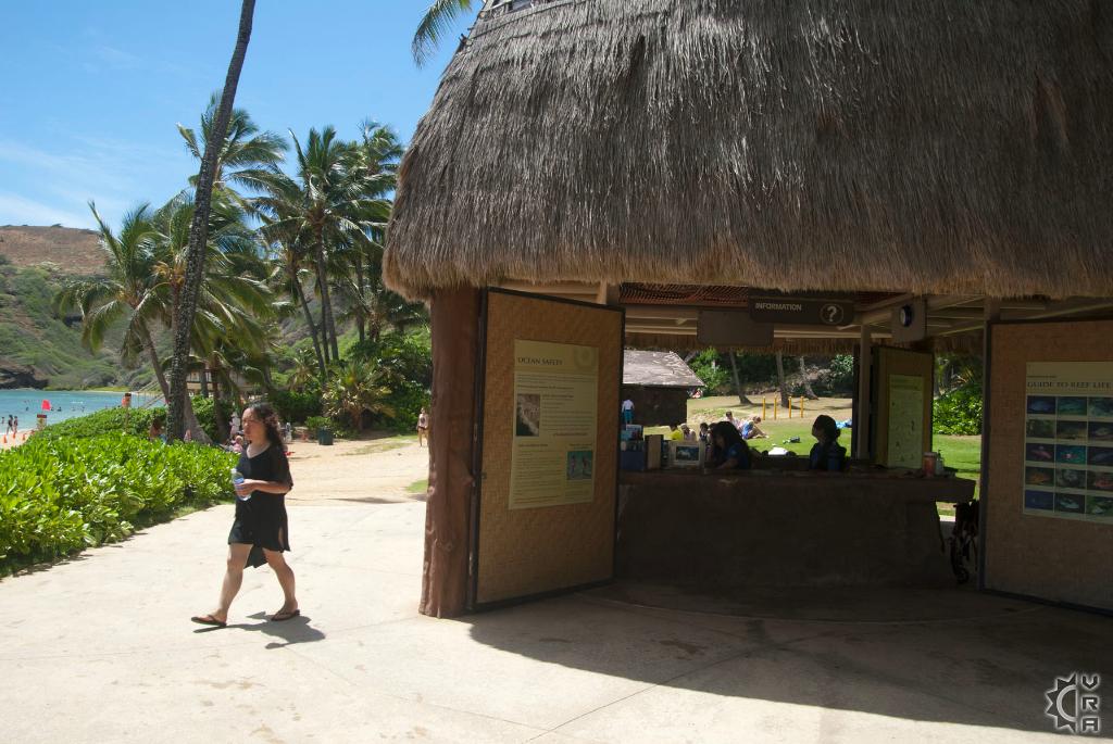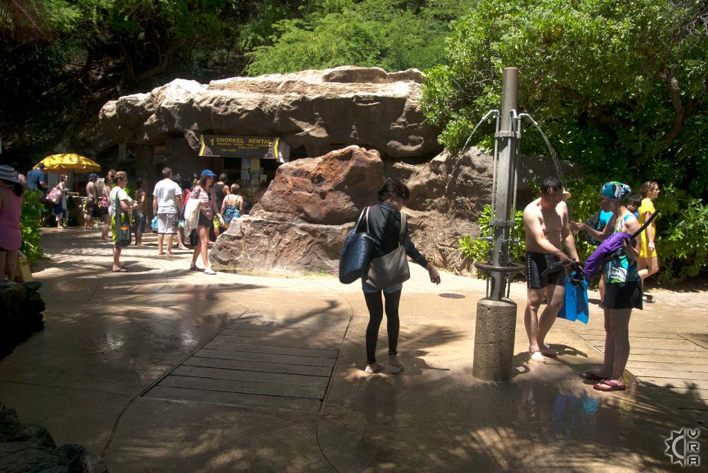 From the Visitor Center the path leads to the beach down a steep 200 yard-walk. A $2 tram ride ticket provides access to an all-day shuttle to and from the beach, and is totally worth it! The amenities are very convenient at this beach. There are three restrooms, showers, information stall, and a centrally located snorkeling rental booth with fins and floatation vests, situated right on the beach behind the central lifeguard tower at the bottom of the footpath.