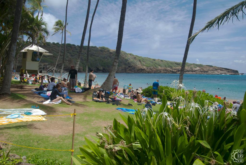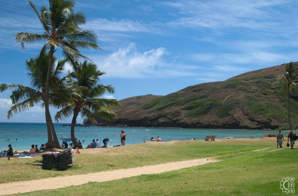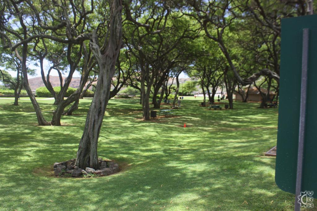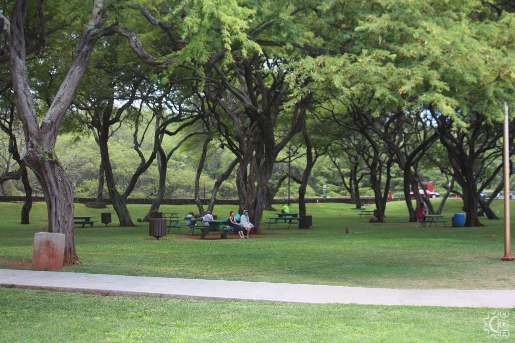 Hanauma Bay Nature Preserve also has a very nice, lush, green picnic area that is not immediately visible from the parking lot. Sitting atop the center of the bay, it provides a welcome shade, with picnic tables situated under tall old trees, and a bathroom. The municipal bus stop is in its immediate vicinity, a clever alternative to being affected by the parking limitations.
