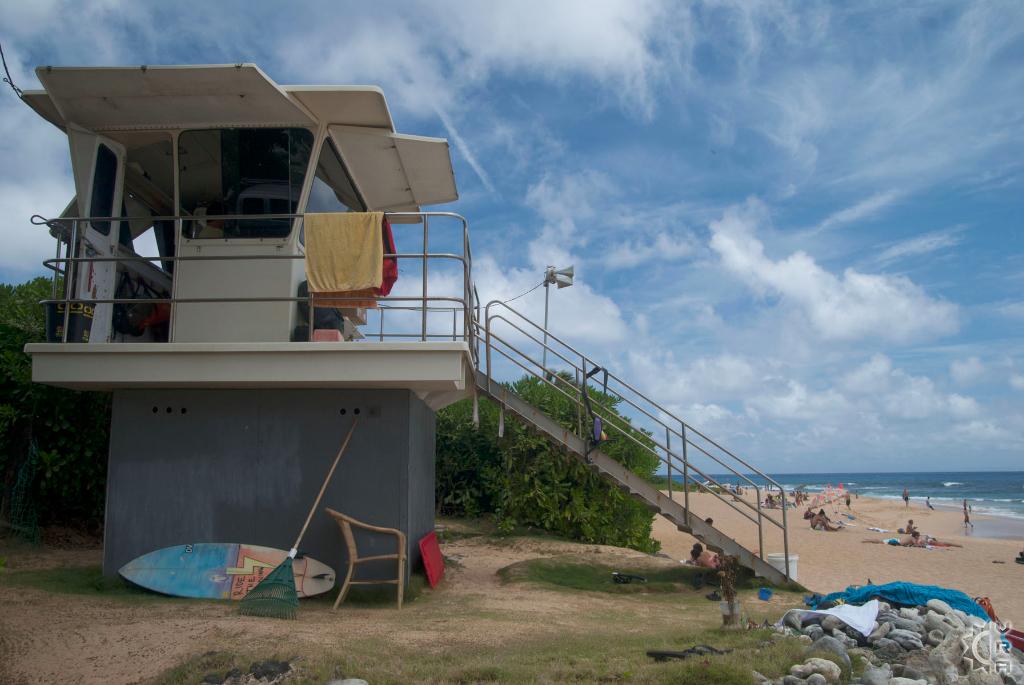 The left side of the beach, in front of the second lifeguard tower, has rip currents that can pull a person under and out beyond the breaking waves in no time at all. Strong trade winds sweeping from left to right make these conditions prevalent. This and the surf break off-shore keep lifeguards at this tower at full alert. The lifeguards here are happy to educate visitors about hazards of the day, they prefer to keep visitors safe.