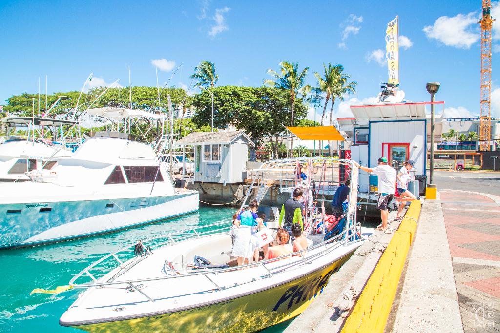 From Waikiki, take Ala Moana Blvd toward the Ala Moana shopping center. Just past Ala Moana Beach Park, turn left into the Kewalo Basin. Parking is $1/hour.