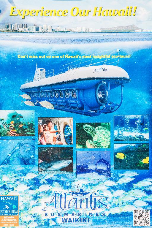 HIGHLIGHTS: The 48-passenger sub will take you 100 feet deep to explore a vast underwater world teeming with colorful tropical fishes, coral, sea turtles and maybe even a shark or two! You'll learn about shipwrecks, artificial and real reefs, the interesting life of coral, and much more. Audio headset narrations are available in English, Japanese, Korean, Spanish, and Chinese. Guests will leave with an Atlantis Souvenir Dive Log to remember their adventure.