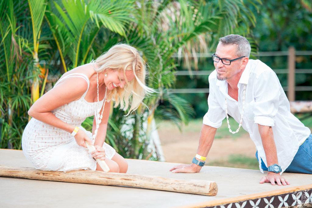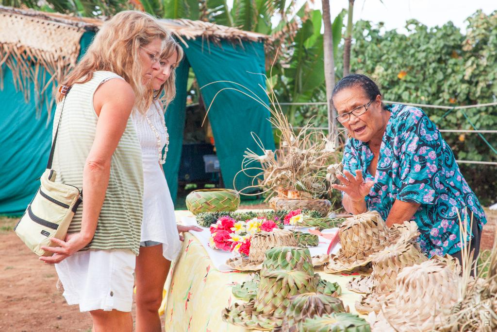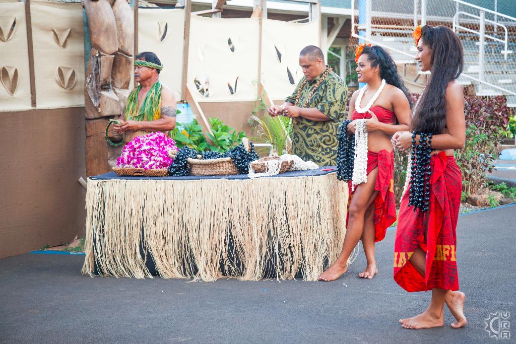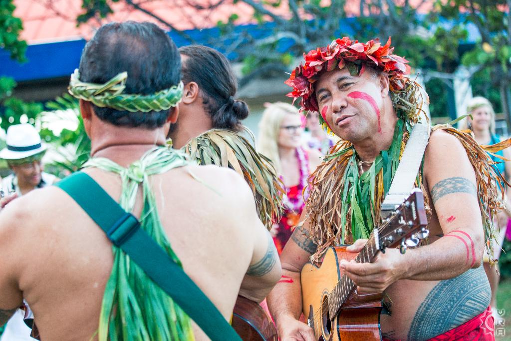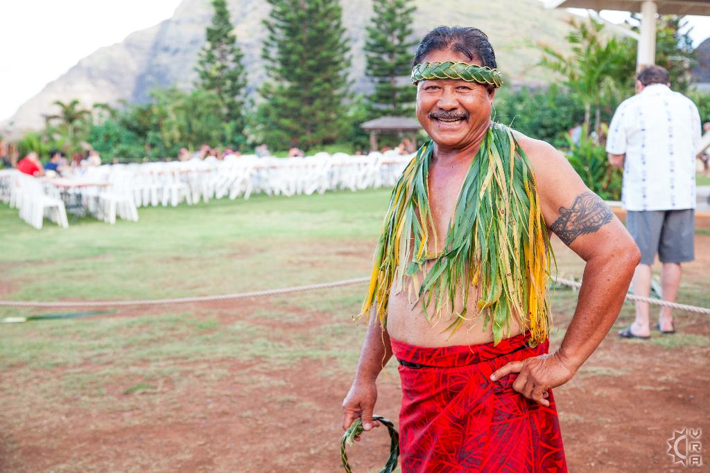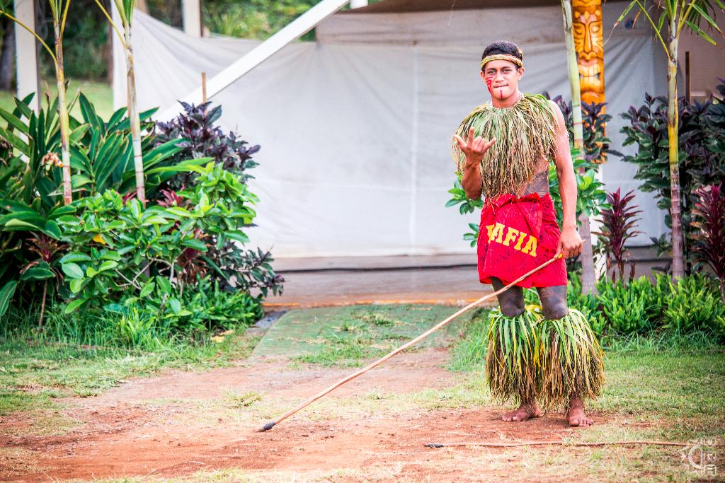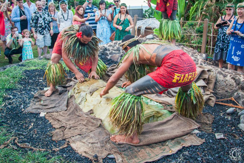The Chief, internationally-acclaimed entertainer Chief Sielu, welcomes visitors to the Luau at 5pm with music, photos, games, a polynesian tattooing booth, fire stick making tutorials, hula lessons, headband weaving, and more. It's a festive environment with Mai Tais and other tropical drinks, island-style music, and the tantalizing smell of the roasted Kalua pig.
