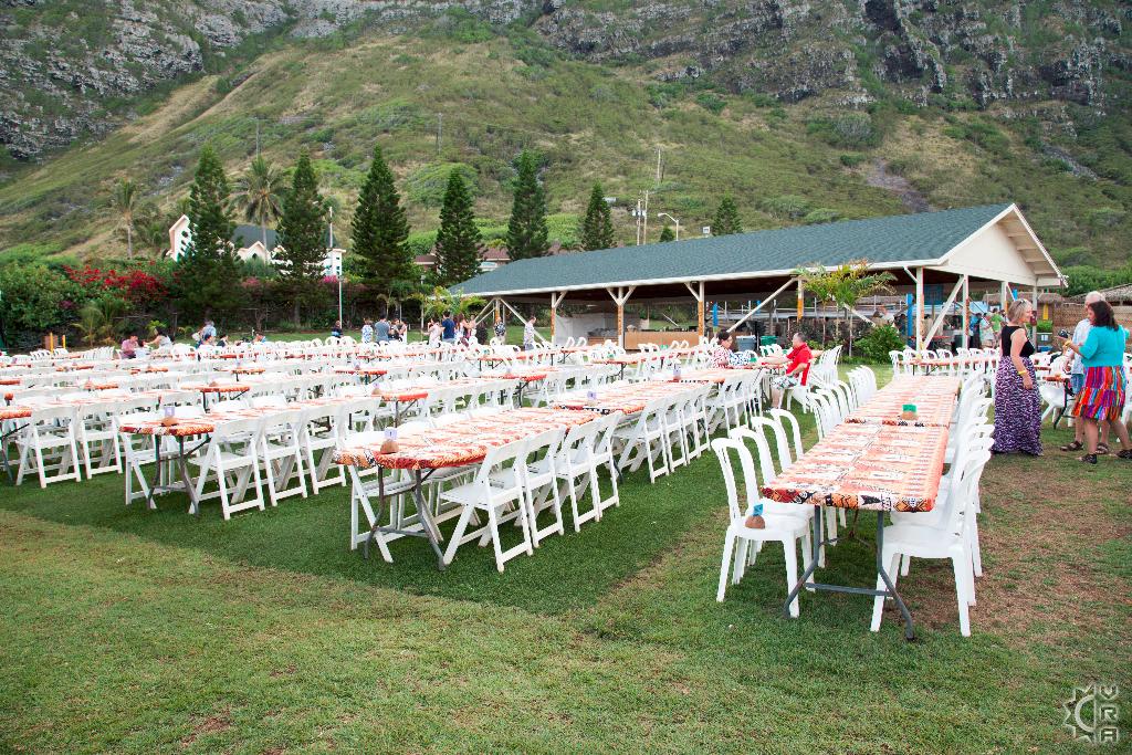 The pig is unveiled in an 'Imu ceremony, and then the feasting begins. The seating and stage area is all open air in Makapuu Meadows, and visitors have a pristine view of Oahu's beautiful Windward coastline, with mountain cliffs to one side and the ocean to the other.